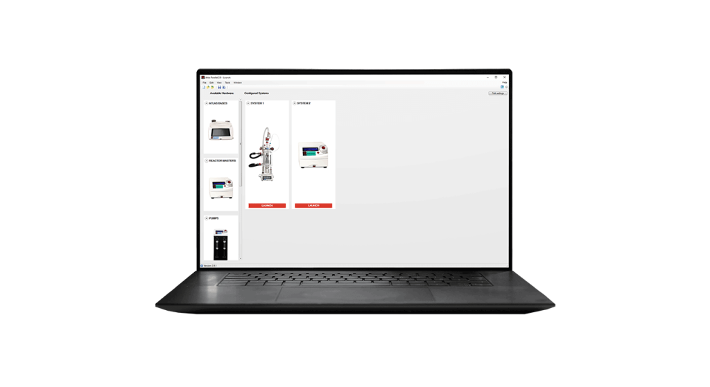 - Control of manufacturer’s apparatus: The intelligent software not only controls all Atlas hardware but will also control all RS232 devices including pumps, balances, circulators, sensors, FTIR probes, FBRM probes, etc.